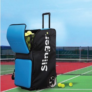 Hit the courts solo anytime anywhere. The Ball Machine comes complete with an oscillator for varying ball direction a telescopic ball collector tube remote control and phone camera holder. Slinger Bag is a revolutionary portable tennis ball launcher built into a standard trolley bag for tennis players of all abilities.